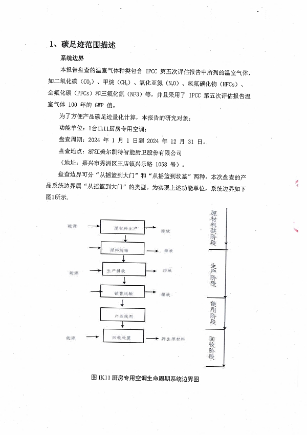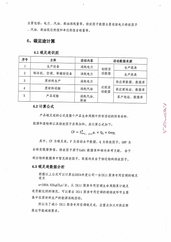2024年度iK11廚房專用空調(diào)產(chǎn)品碳足跡報告
